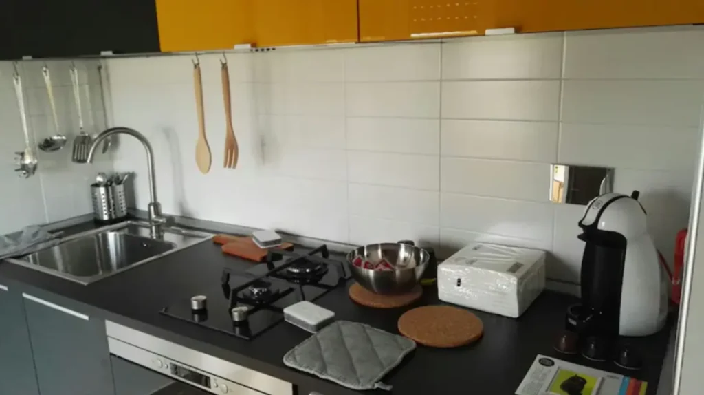 • Cucina completa: dotata di piano cottura, forno, frigo e congelatore.